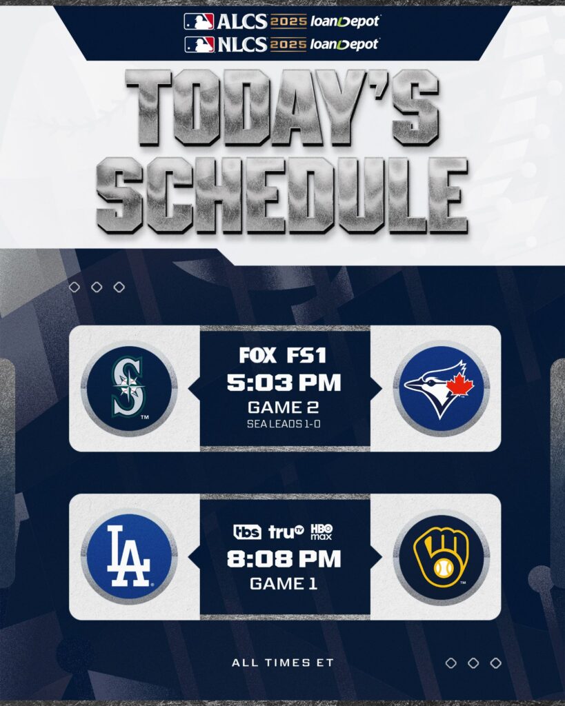 MLB Today Live Update: United States of America Let’s play two! #ALCS #NLCS October 14, 2025October 13, 2025 by Leo MLB Today Live Update: United States of America Let’s play two! #ALCS #NLCS Let’s play two! #ALCS #NLCS