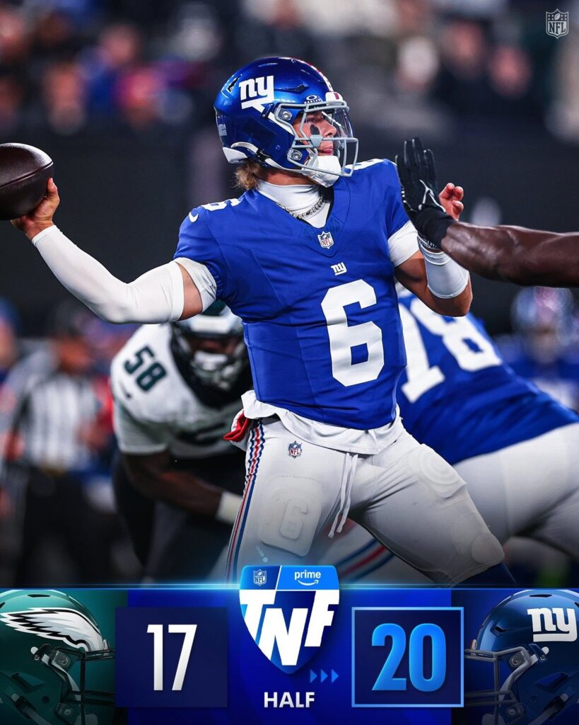 NFL Live Report: A wild half ends with the Giants up three. PHIvsNYG on Prime Video
