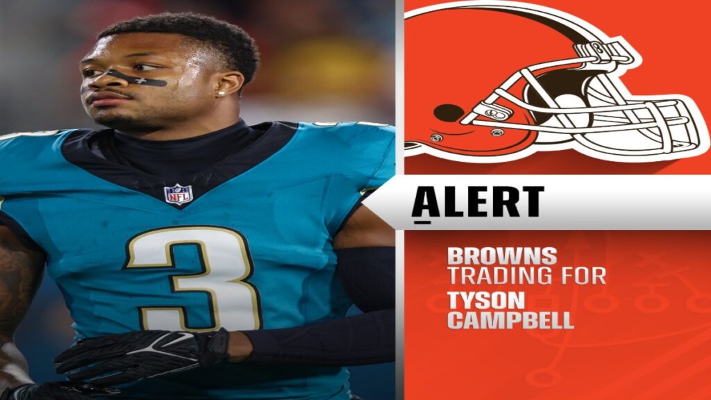 Browns Acquire CB Tyson Campbell in Surprise Cornerback Swap with JaguarsThe graphic you’ve shared is a fan-made (or mock) “TRADE ALERT” post circulating on X and sports forums today, October 9, 2025, featuring Jacksonville Jaguars cornerback Tyson Campbell (No. 3, teal jersey) with a Cleveland Browns helmet overlay. It captures Campbell in action during a game, with the dramatic red-and-orange design mimicking official NFL alerts. While the image itself is speculative hype, the trade it references is real—finalized late last night (October 8) and confirmed across major outlets this morning. It’s the second blockbuster deal between these teams in six months, following their 2025 draft-night pick swap.Trade BreakdownThe Browns and Jaguars executed a straight cornerback swap with a minor draft pick sweetener, pending physicals. Here’s the full deal: