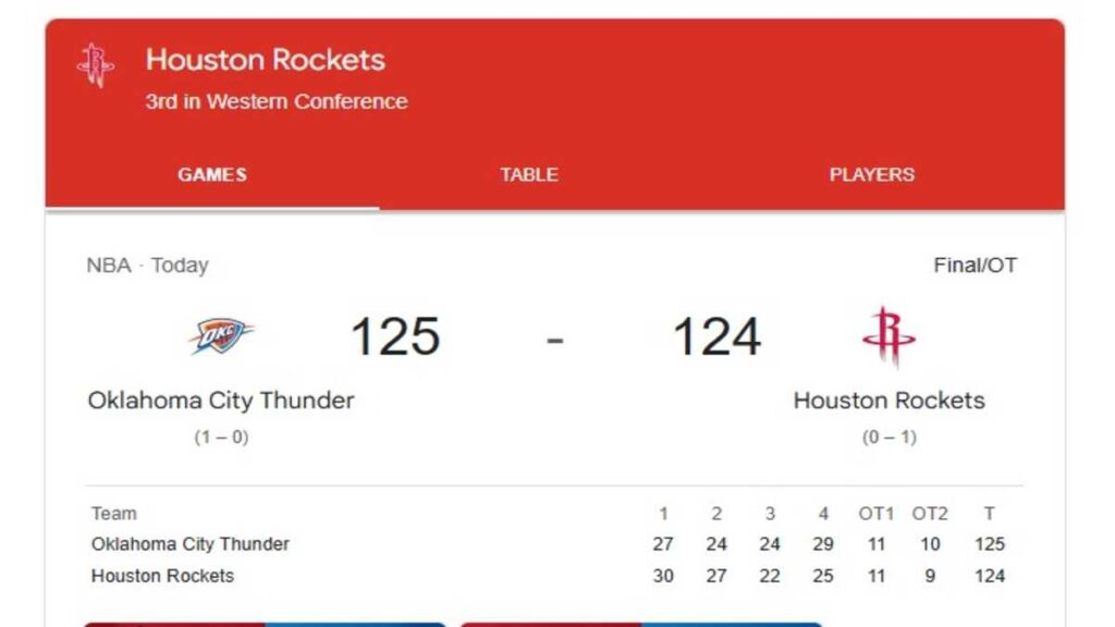 thunder vs rockets