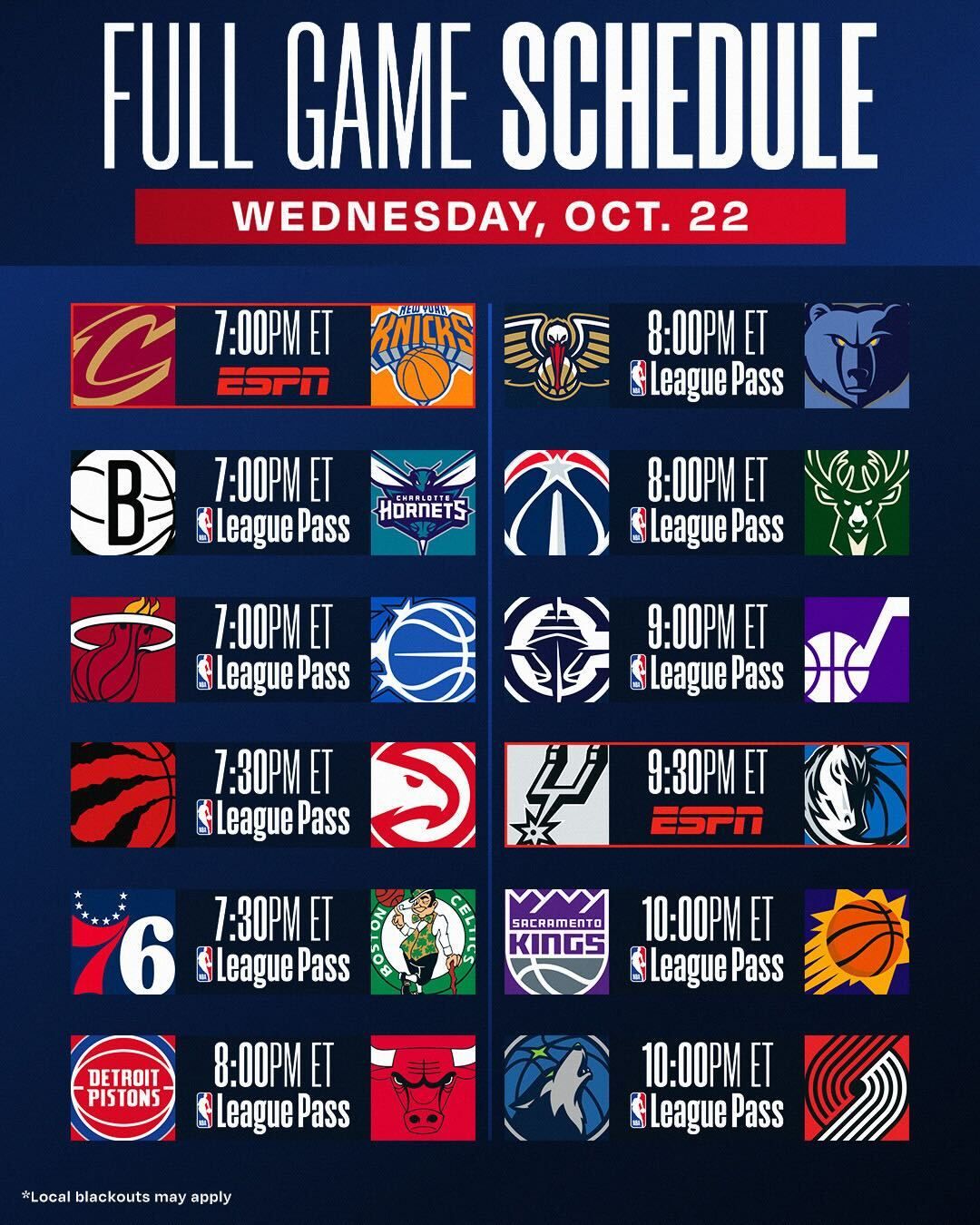 NBA Schedule Today: 24 TEAMS OPEN THEIR SEASON TONIGHT, 1 and 3 in East last year CLE, NYK face off at MSG, Watch all the action on ESPN and NBA League Pass!