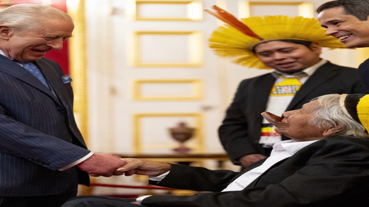 The King with Indigenous Brazilian leader and environmentalist Chief Raoni Metuktire.Last night at St James’s Palace