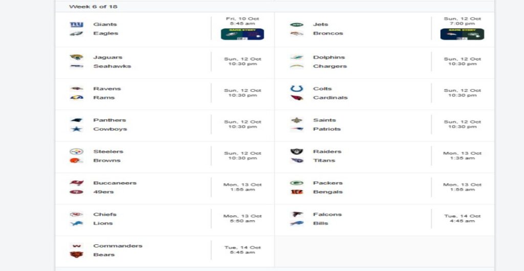 United States NFL Live Update : The schedule for Week 6 of the 18-week NFL season
